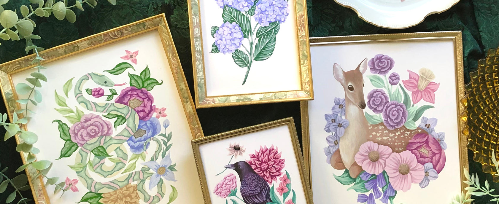 Every print and product in my shop begins from a painted design - I am inspired by vintage designs (big thrifter here!) and the beauty of the natural world.